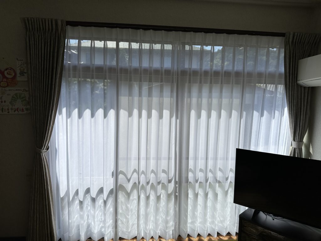 以前使用していたレースカーテンが破れてしまったので 新しい物に吊り替えさせていただきました。 無地ですが、よく見ると地模様がはいっており、シンプルだけどオシャレ感もあります。 お部屋がパッと明るくなりました。 ご用命ありがとうございました。 -