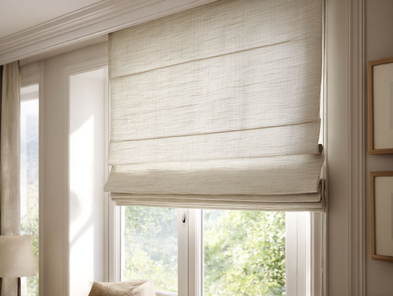 上下に生地をたたみながら昇降させるスタイルで、窓まわりがすっきりした印象に。モダンなインテリアや小窓に最適です。厚地+レースの2重シェードにも対応できます。