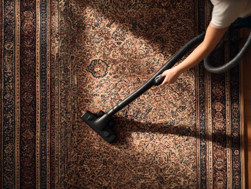 ペルシャ絨毯を掃除する際は、毛の流れに沿って優しく掃除機をかけましょう。