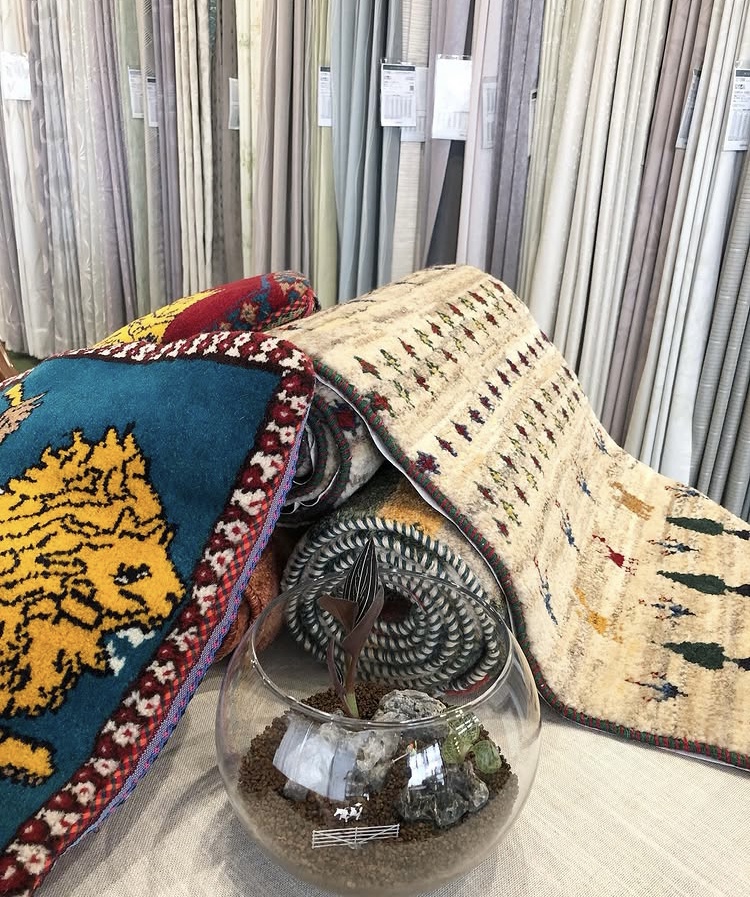 カーテンや絨毯とグリーンのコラボはとっても素敵です