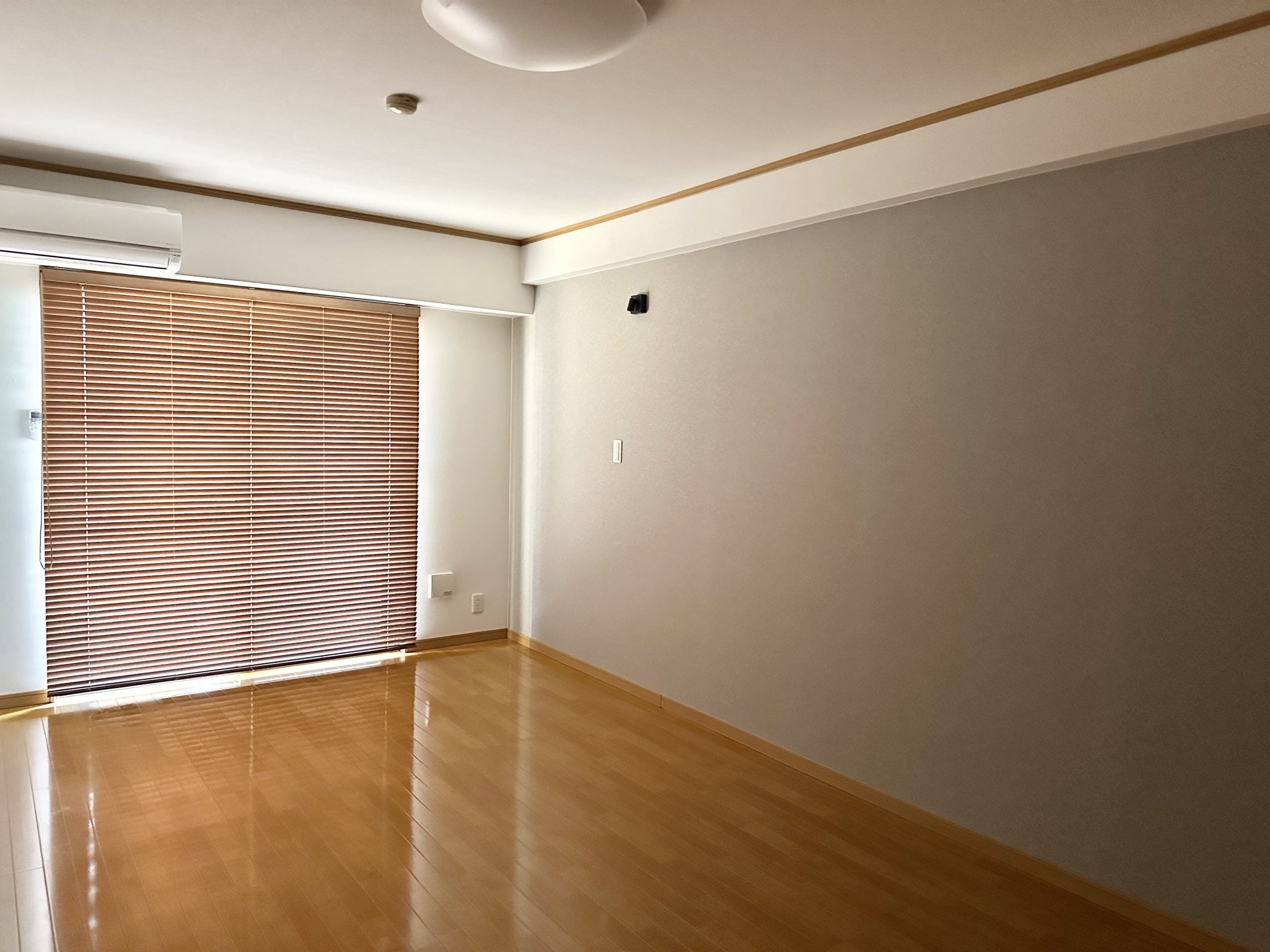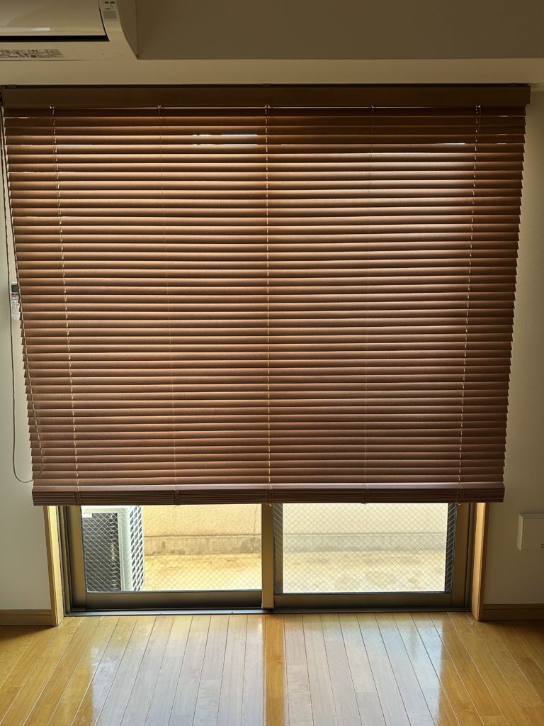 退去後の原状回復工事・クロス貼替・ウッドブラインド取り付け等を行いました。