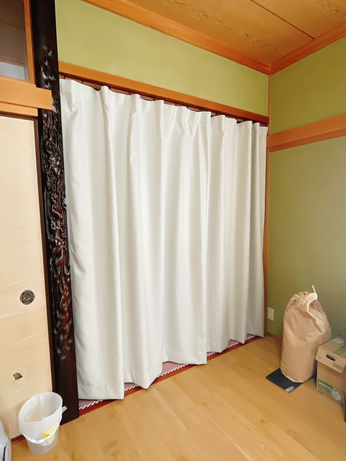 I様邸 和室の間仕切りにカーテンを設置させて頂きました。