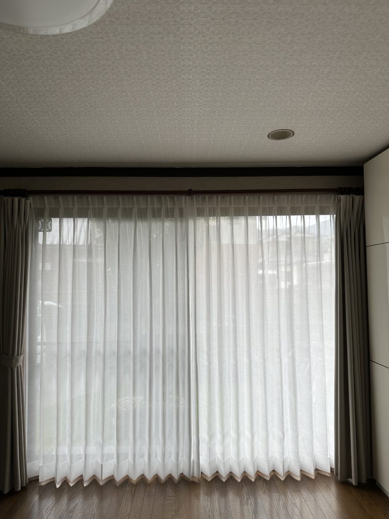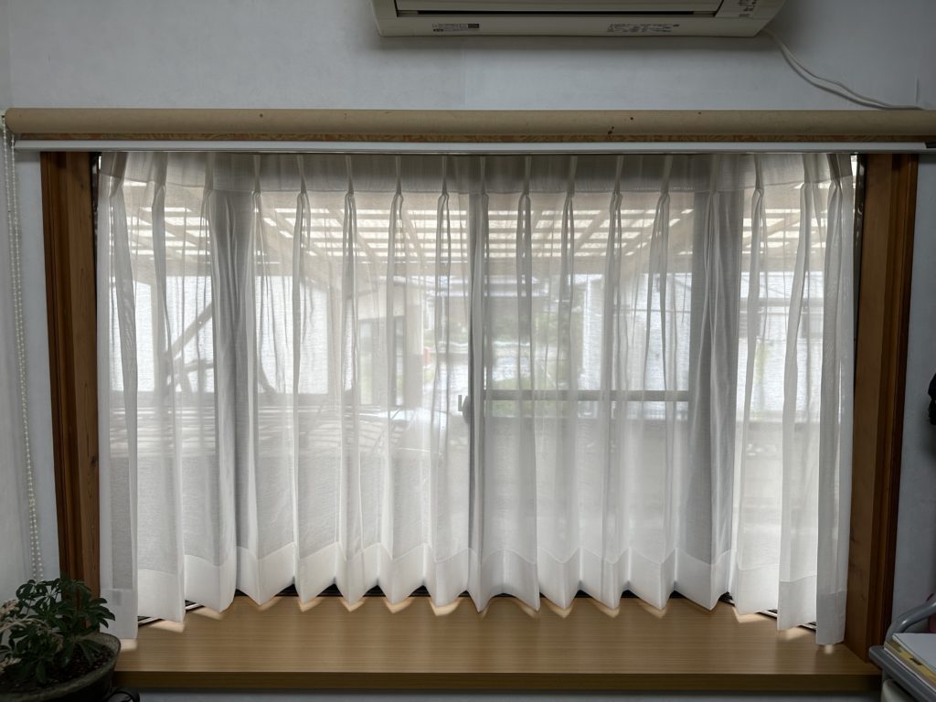 透け感がとても素敵なレースを選ばれました。出窓には新たにレールを設置しております。