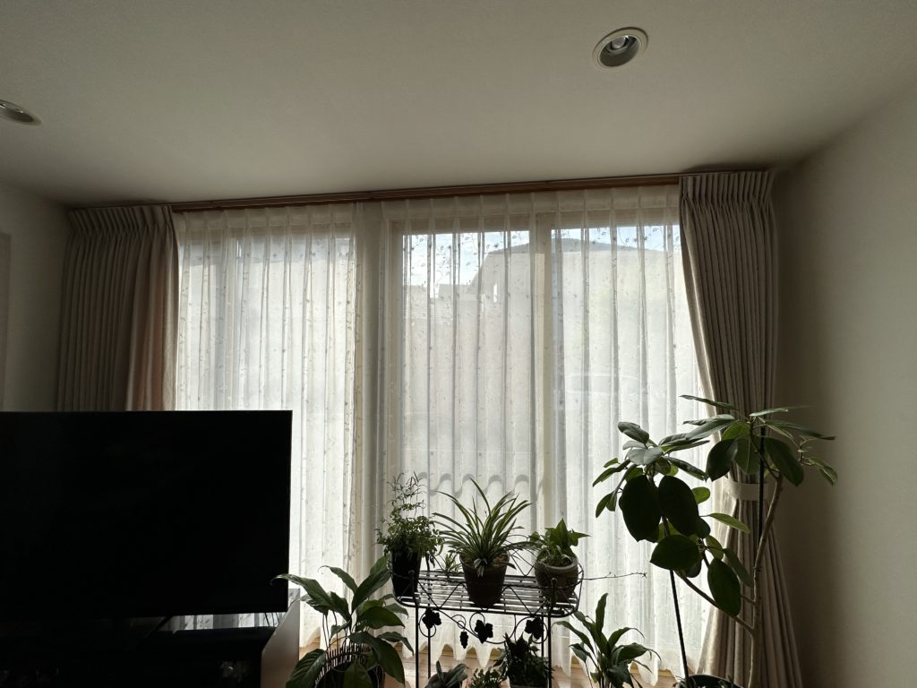 大きな掃出し窓も同じ生地ですが、印象が変わりますよね。